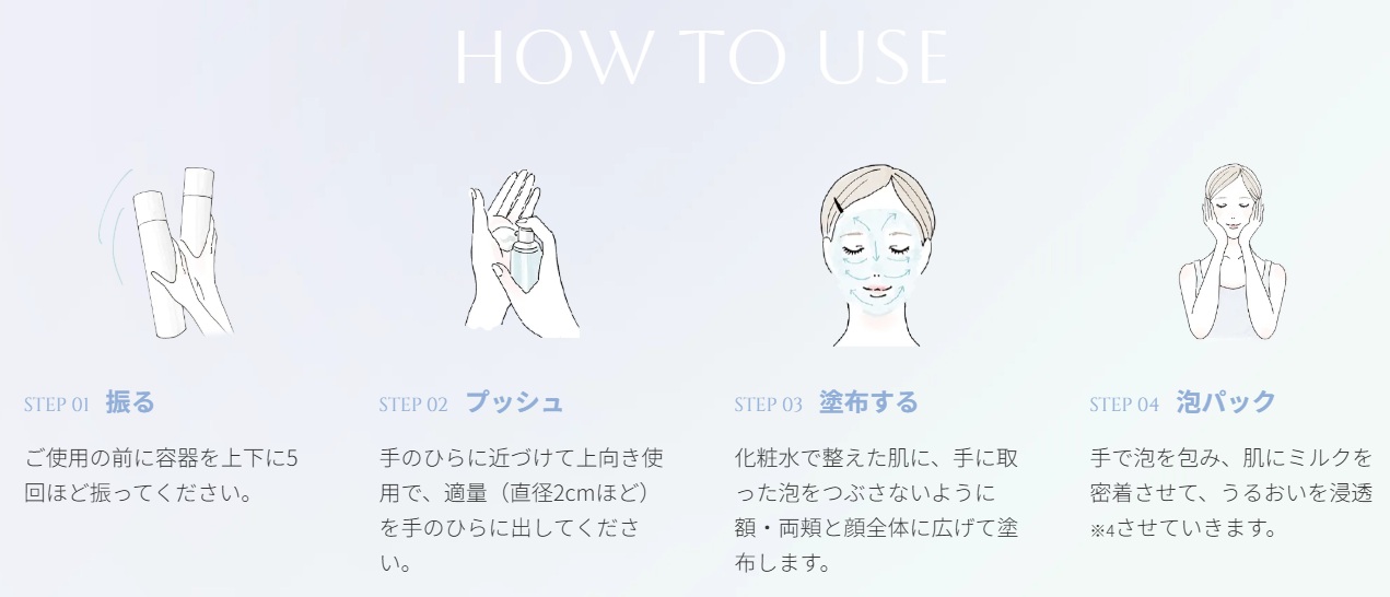 炭酸とナノバブルをたっぷり含んだふわっと泡ミルクと贅沢な美容成分が、お肌をうるおいで満たします。