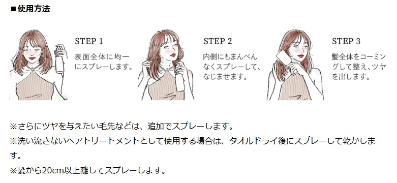 髪全体にツヤと輝きを与え、創りたいニュアンスも思い通りに。新感覚のケアスプレー。